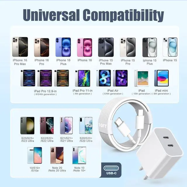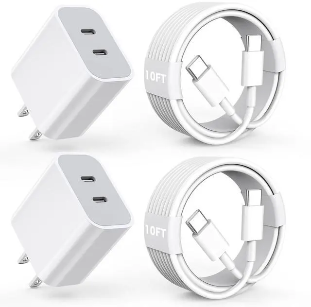 20W Dual Port USB C Fast Charger Adapter For iPhone 17 16 15 with USB C to C High Quality Charging Cable