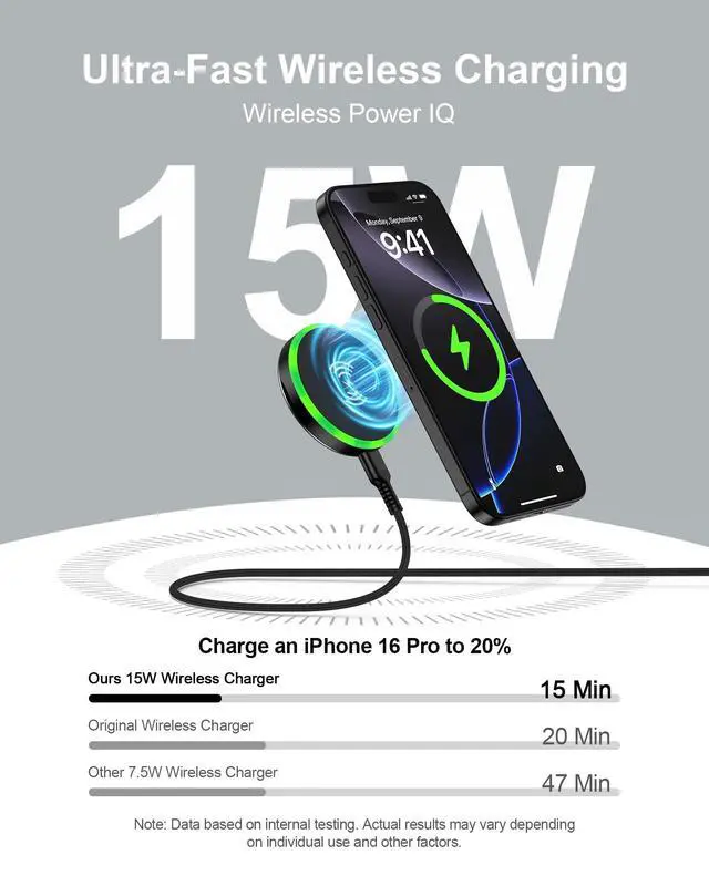 MagSafe Wireless Charger provides up to 5W/7.5W/10W/15W fast charging for Phone