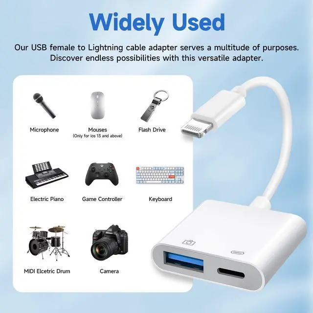 ![Alt view image 6 of 7 - [Apple MFi Certified] Lightning to USB Camera Adapter with Charging Port, Portable USB3.0 Female OTG Cable for iPad to Connect Card Reader USB Flash Drive, Compatible for iPhone iPad](https://c1.neweggimages.com/productimage/nb640/C3H4D25121008G2B84F.jpg)