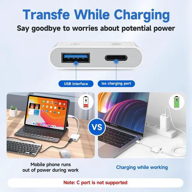 ![Alt view image 3 of 7 - [Apple MFi Certified] Lightning to USB Camera Adapter with Charging Port, Portable USB3.0 Female OTG Cable for iPad to Connect Card Reader USB Flash Drive, Compatible for iPhone iPad](https://c1.neweggimages.com/productimage/nb640/C3H4D25121008G21UC3.jpg)