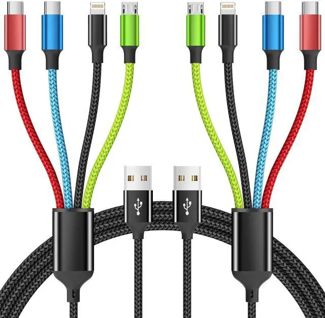 ![Alt view image 4 of 7 - 4 in 1 Multi Charging Cable [2Pack 5FT], Tangle Free USB C Car Charger Cable Nylon Braided with 2 USB-C/IP/Micro, Travel Charging Cords for iPhone Android iPad and More](https://c1.neweggimages.com/productimage/nb640/C5JMD260305034YDQDD.jpg)