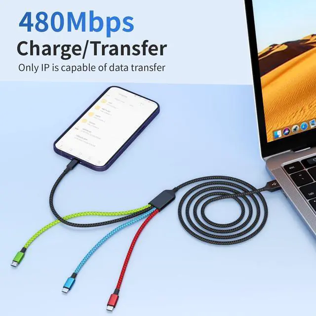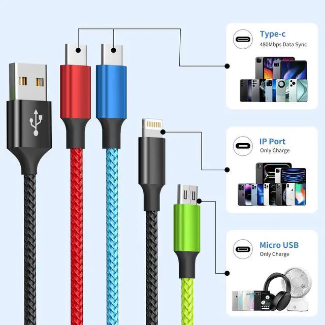 ![Alt view image 6 of 7 - 4 in 1 Multi Charging Cable [2Pack 5FT], Tangle Free USB C Car Charger Cable Nylon Braided with 2 USB-C/IP/Micro, Travel Charging Cords for iPhone Android iPad and More](https://c1.neweggimages.com/productimage/nb640/C5JMD260305034YKK59.jpg)