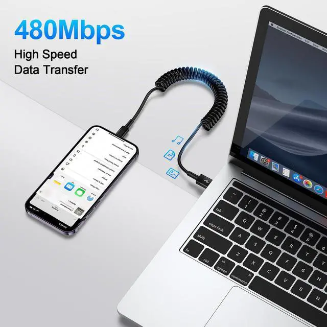• MFi Certified & CarPlay SupportCoiled lightning cable for car is built-in MFI certified chipset, so coiled iphone charger cord works perfectly with your iPhone 14 Pro Max. elastic iphone charging cable supports 3.1Amps fast charging and transfer data at up to 480Mbps. you can also easily connect usb carplay cable to your car's computer to get apple carplay up and running without any hassle. retractable iphone 13 pro charging cord is helpful to use in your car to get directions, take phone calls, reply to messages, and jam out to music while you're on the road!