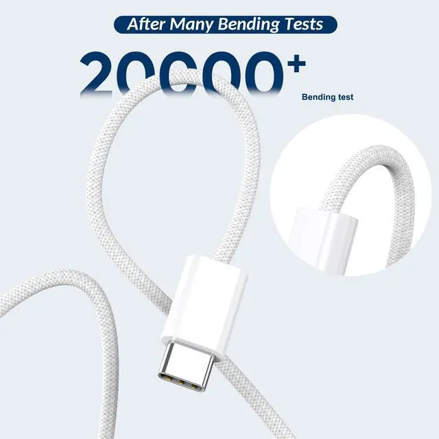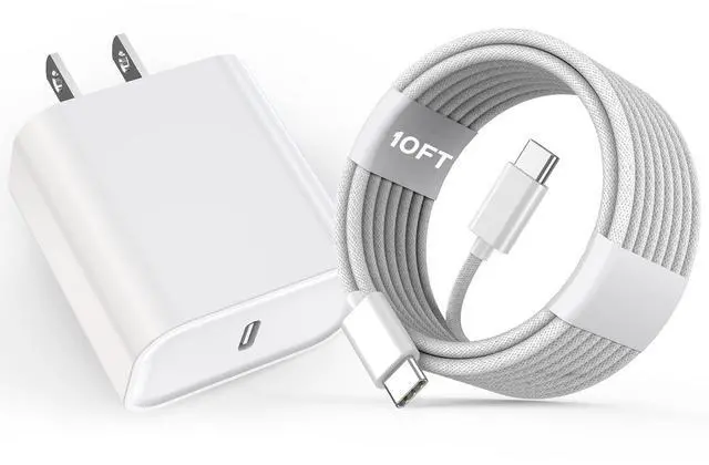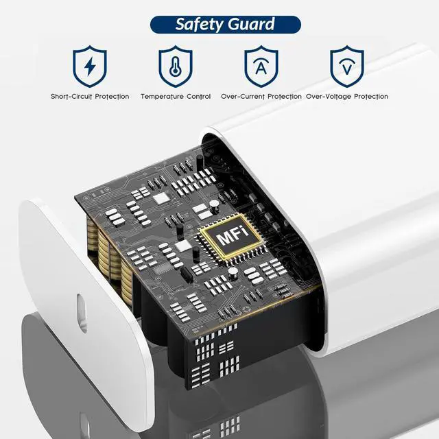 The 20W Fast Charger Features a Safe Design, Mfi Certified, 10 Feet USB C to C 60 Watt Fast Charging Cable that Has Been Tested with Multiple Bends to Ensure Greater Durability. Built-in Multi-Protection Measures and Smart IC Recognition Technology Prevent Overheating and Overcurrent.