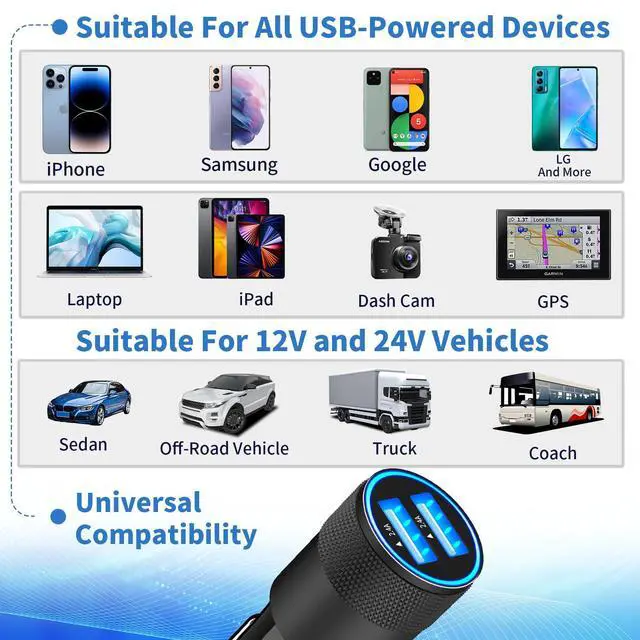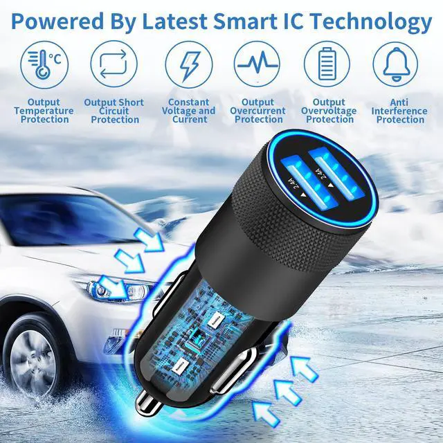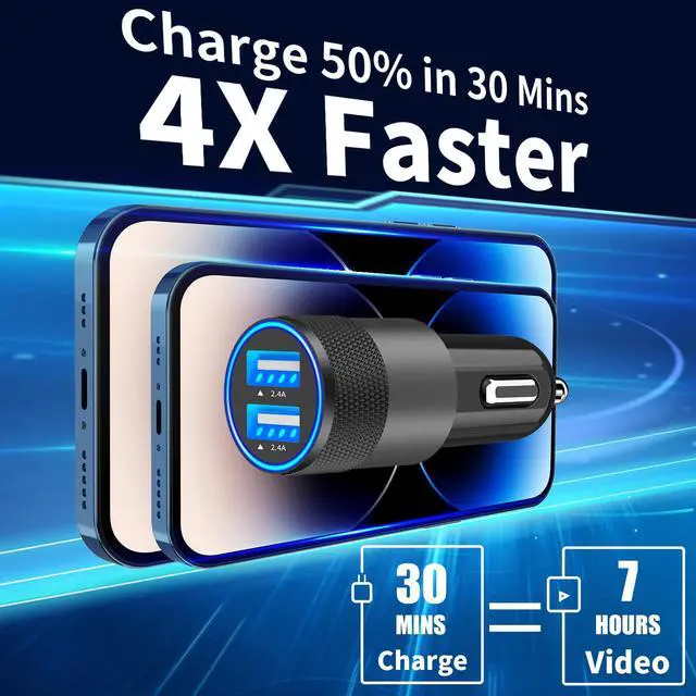 Equipped with Dual USB Smart Power: Using highly efficient components and an advanced chipset, Rombica's High-Tech Chip Technology is perfectly compatible with iPhone. Our intelligent power fast car charger can charging two iPhone devices simultaneously, Provide a maximum of 2.4A/12W if a single port is used and 4.8A/24W when dual ports are used. Our most advanced charging technology ever charges virtually iPhone at its fastest possible, the charging speed is directly increased by 4 times.