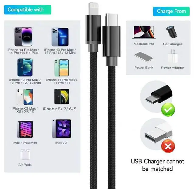 Extra Long USB To Lightning Cable Widely Compatible with All iOS Devices for Charging