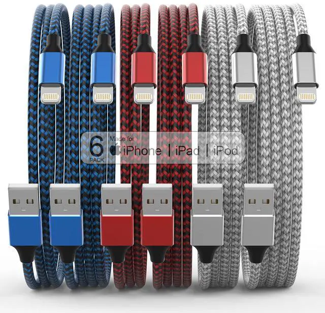 ![Alt view image 2 of 7 - [Apple MFi Certified] 6Pack 3/3/6/6/6/10 FT iPhone Charger Nylon Braided Fast Charging Lightning Cable Compatible iPhone 14 Pro/13 mini/13/12/11 Pro MAX/XR/XS/8/7/Plus/6S/SE/iPad](https://c1.neweggimages.com/productimage/nb640/C5S1D2604070P6UJ1B5.jpg)