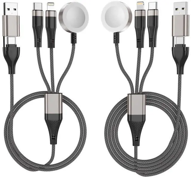 Travel Essentials Multi Fast Charging Cable for Apple Watch Charger/iPhone Charger,2Pack 2/4 FT 3 in 2 USB A/Type C/Lightning USB C Cord Compatible With iWatch Ultra/SE/10-1/iPhone 16-11/Samsung S25-22