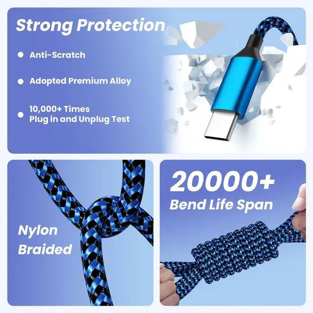 Reinforced USB C 3-IN-1 Cable