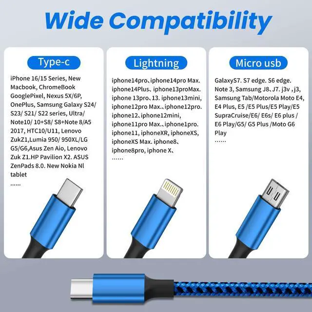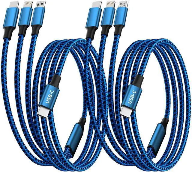 ![Alt view image 3 of 7 - USB C Multi Charging Cable [2Pack 4FT], 3 in 1 Charging Cable USB Cable Nylon Braided Multiple Charger Cord with Type-C, Micro USB and IP Port for iPhone 16/15 Series/Cell Phones and More-Blueblack](https://c1.neweggimages.com/productimage/nb640/C691D2604210B123A86.jpg)
