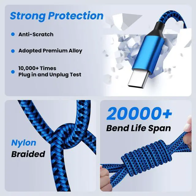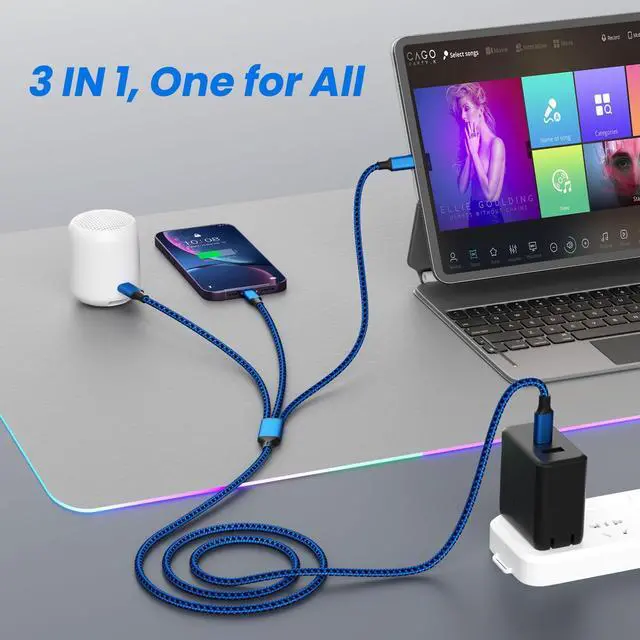 ![Main image of USB C Multi Charging Cable [2Pack 4FT], 3 in 1 Charging Cable USB Cable Nylon Braided Multiple Charger Cord with Type-C, Micro USB and IP Port for iPhone 16/15 Series/Cell Phones and More-Blueblack](https://c1.neweggimages.com/productimage/nb640/C691D2604210B121ZCB.jpg)