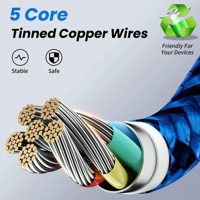 Tinned Thickened Copper Core with Greater Electrical Conductivity That Ensures More Stable Charging, Which Also is Friendly to the Devices.