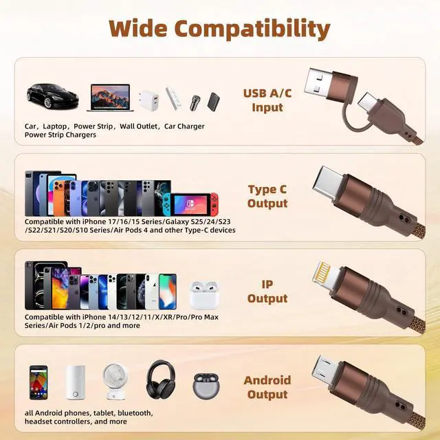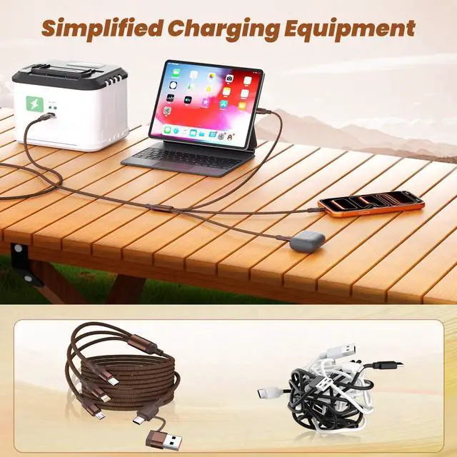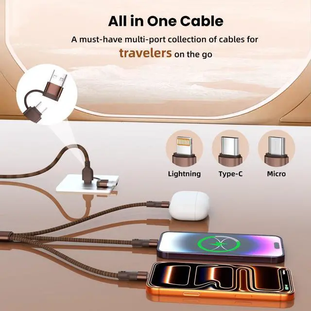 [5 in 1 Multi Charging Cable]:This 5-in-1 multi charger cable combines a 2-in-1 USB-A to USB-C adapter with a 3-in-1 charging port (micro USB / Type-C / Lightning). It is compatible with both USB-A and USB-C chargers and supports charging most phones. One travel charger for multiple devices meets your diverse charging needs, eliminating the need for multiple adapters and solving compatibility issues with various electronic devices