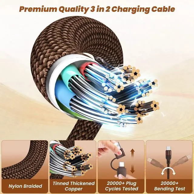 [Charging&Data transfer]: Our multiple charger cord is made of high quality tinned copper material and chips. Compared with pure copper, it ensures more stable and safer charging, prevents overheating during the charging process, and extends the cable's lifespan. It can deliver up to 3A of the fastest available current. (Total current, not per end). Note: 1. Only For USB-C port supports charging and data transfer, other Micro and IP ports support charging only. 2, Actual charging speed depends on your device and wall charger