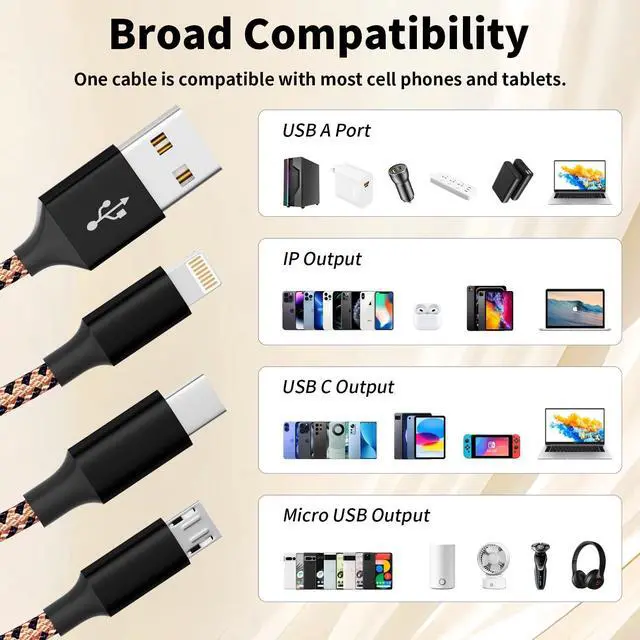 Prominent Compatibility: The Type C port: Compatible with type c supported devices. The Micro USB port: For most Android and Windows phones, tablets, and many other devices connectors can be used for IOS phones. In addition, the phone charger cord for multi charger also supports data transfer at speeds up to 480 Mbps, allowing you to transfer files instantly