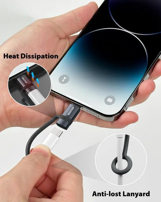 It features a premium aluminum alloy housing for superior durability and heat dissipation. Plus, an integrated anti-lost silicone lanyard secures the adapter to your cable so you never misplace it.