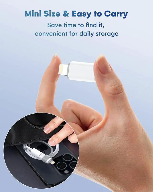Compact Size & Anti-Loss Design (Never Lose It Again): The tiny adapter that stays put. Featuring a mini silicone loop, this type c to lightning adapter securely clips onto your charging cable.No more searchingyour adapter is always attached and ready, making it effortlessly portable for home, office, or travel