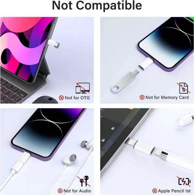 - 1.Not Support Audio (Headphones)/OTG, Apple Pencil (1st gen), flash drive, sd card reader, square reader, printer, microphone, camera, mouse, keyboard, Hubs, HDMI converter,etc.