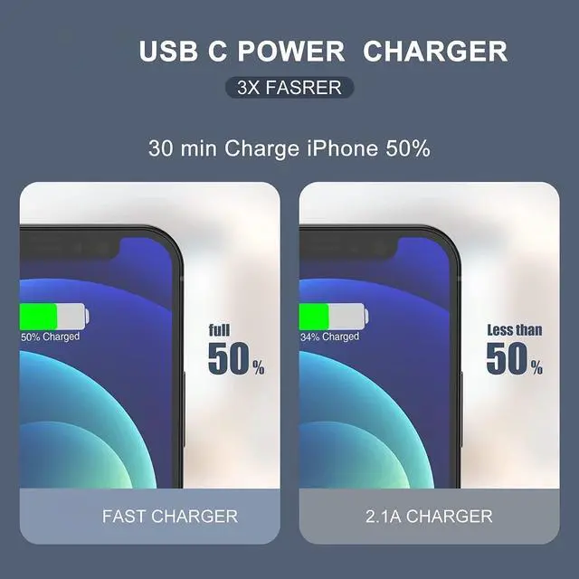 Perfect 20W USB C Fast PD Charger and 10FT long Type C to Lightning Cable, can provide fast and safe charging for your devices, can be used for your multiple devices, perfect solution for your charging needs!