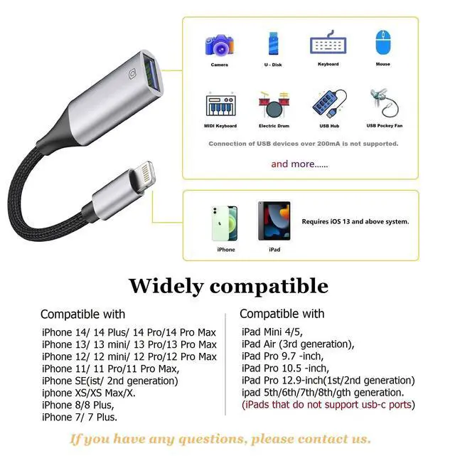 ![Alt view image 7 of 7 - Lightning to USB Adapter [Apple MFi Certified], USB Camera Adapter for iPhone, iOS OTG Cable Adapter, Supports Flash Drive, Card Reader, Mouse, Keyboard](https://c1.neweggimages.com/productimage/nb640/C688D2604260S3LW7EB.jpg)