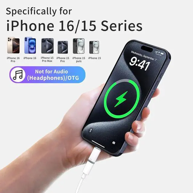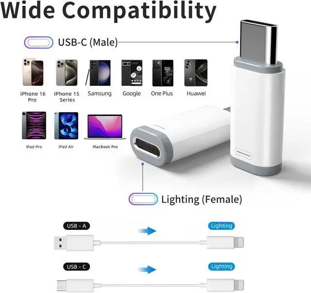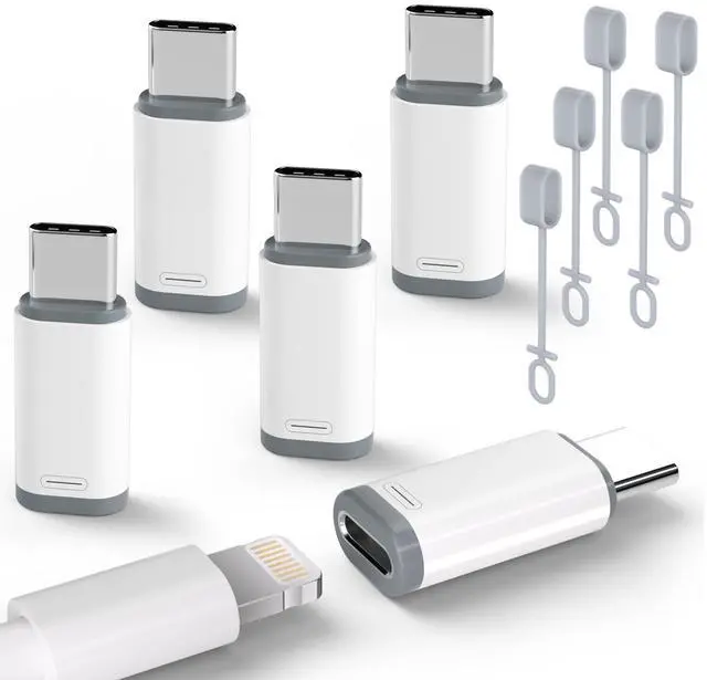 5 Pack USB C to Lightning Charge Adapter for iPhone 17 16 15, Lightning to USB C Adapter with Fast Charge Data Transfer for iPhone 17 16 15 Plus Pro Max, Galaxy S24 S23, Pixel 8 7, iPad Pro, MacBook Pro