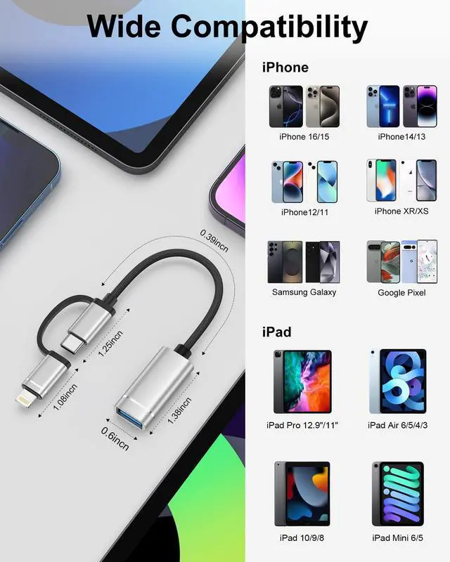 Compatibility: iPhone, iPad, Samsung, Google, and all USB-C/Lightning devices
