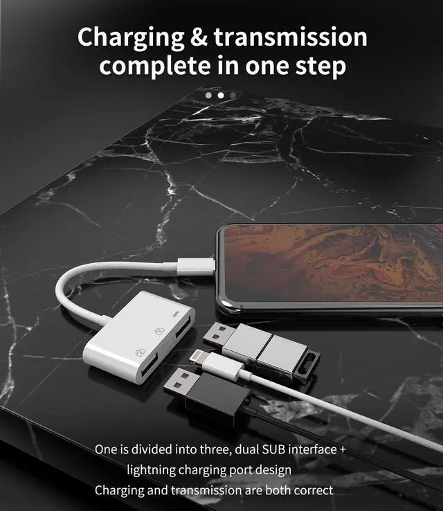 Lightning to USB Adapter OTG Cable Connector for Iphone Apple Splitter 13 12 11 mini Pro Max X Xs Ipad Male Converter and Charger Charge Female Port Camera Keyboard Mouse Adaptador Para HUB Charging