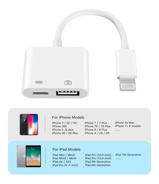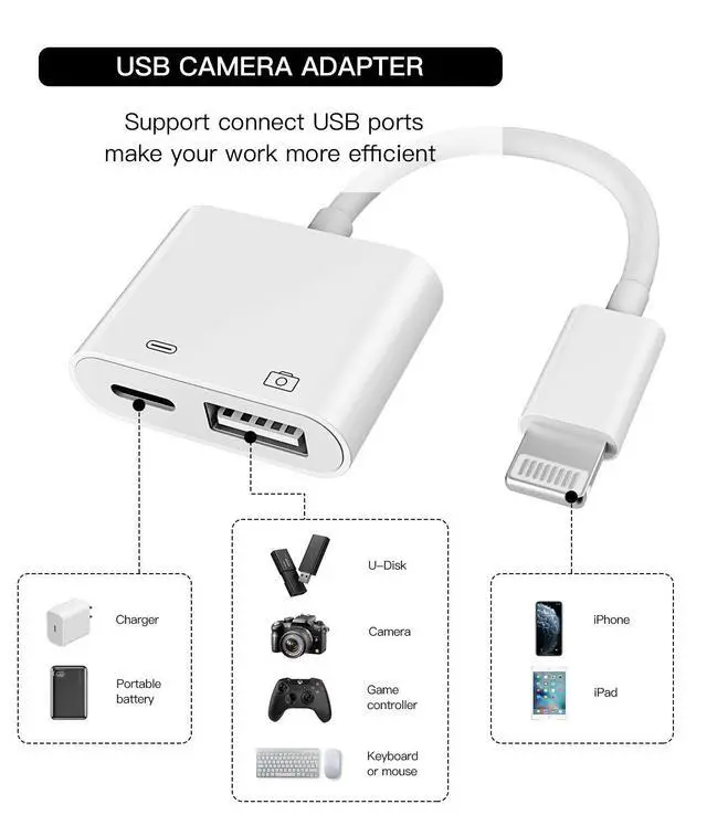 for iPhone OTG Adapter Charger Cable Converter Lightning Male to USB Female Dongle Camera Memory Keyboard Stick Flash Drive Cord Card Reader Mouse for Apple 13 12 11 Pro Max Mini for iPad Charge MIDI Splitter