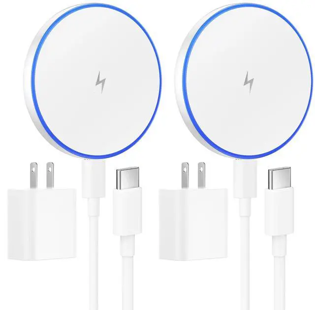MagSafe Charger 2 Pack 15W Magnetic Wireless Charger Fast Charging Pad with 20W Adapter and 6FT Cables for iPhone 17/16/15/14/13/12 Series/AirPods 3/2/Pro Apple MagSafe Chargers for Travel/Office
