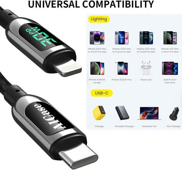 Compatibility List: USB-C to light-ning cable supports PD Fast Charge 3A/30W (max) for iPad 8th iPad 2020, iPhone 13/13 Mini/13 Pro/13 Pro Max/12/12 Mini/12 Pro/12 Pro Max/11/11 Pro/11 Pro Max/XS Max/XS/XR/X/8 Plus/8 and iPad Pro 12.9" gen1/iPad Pro 12.9" gen2/iPad Pro 10.5" /iPad Air3 10.5" /iPad mini5 7.9"; This cable also supports the standard charge (5V/ 2.4A max) for iPhone 7 Plus/7/6 Plus/6/6S Plus/6S etc.