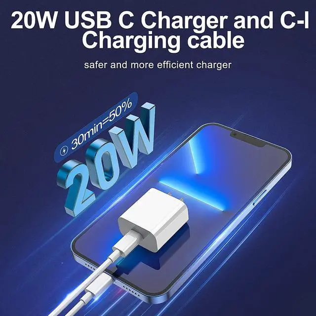 The ETL certified wall charger built-in over-voltage protection features a stable voltage. the lightning cable built-in smart chip to match the current required by devices automatically. Universal Compatibility Works With for iPhone 13/13Pro/13Pro Max 12/12 Mini/12 Pro/12 Pro Max/SE /11/11 Pro/11 Pro Max/XS/XS Max/XR/X 8 Plus iPad. This 20 USB Wall Fast Charger also charge for iPhone 7 6 Plus iPhone 5 5c 5s SE in a Original Charging Speed. What You Get 2 pack of 20W USB-C iPhone charger and 2 pack of 6FT&10FT USB-C to Lightning charging cable are packed in a box1 year worry-free refund and replacement guarantee.