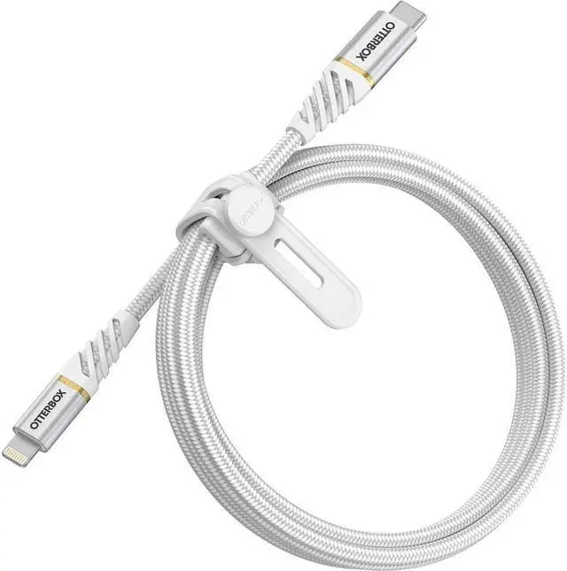 PRODUCT OVERVIEWOtterBox Fast Charge Premium Lightning to USB-C Cable is proven rugged, dependable and made to last. Braided nylon combats fray and tangles while reinforced strain relief protects notorious weak spots for remarkable strength and longevity. KEY FEATURESUp to 4X faster charging* so you wont miss the moments that matter mostProven rugged, tough, and built to outlastBraided nylon combats fray and tanglesBend/flex-tested 10, 000 times for rigorous useReinforced strain relief for remarkable strength and longevityPremium construction with an anodized aluminum finishIncludes premium cable management wrap for a neat and simple experienceDesigned to work flawlessly with your favorite OtterBox cases and accessoriesSupports USB Power Delivery fast charging technology