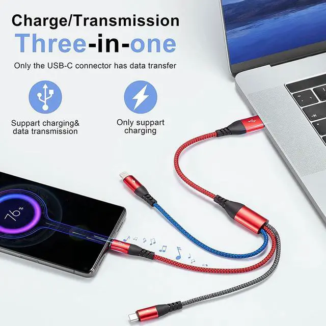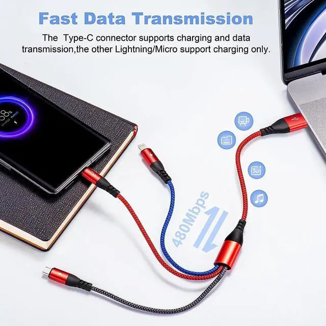 Charging Cable: Charge any of your devices with the 3 in 1 retractable charging cable built-in Lighnting/Type-C/Micro-USB connectors. (Only USB-C port support charging Fast and syncing 480Mbps)? Charging Fast and