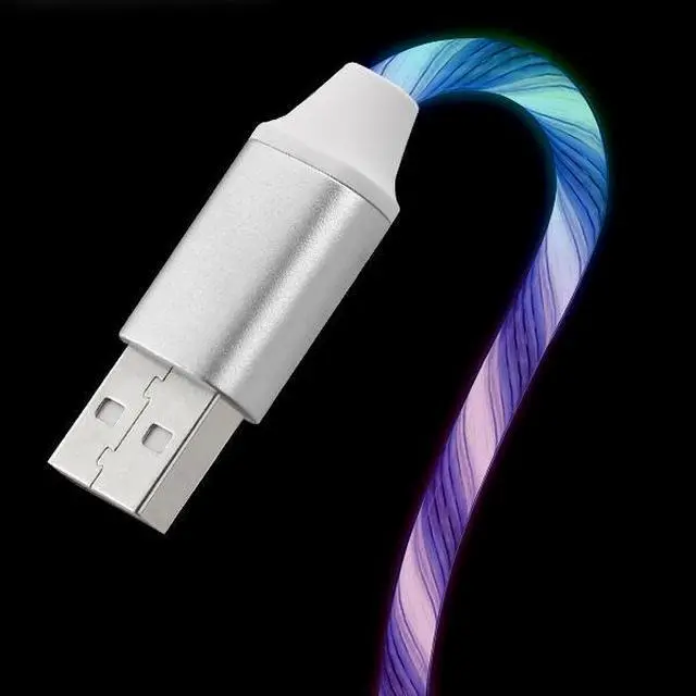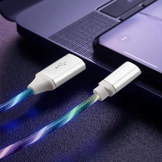 Features: Innovative flowing LED effect brings charging way more fun and nice illuminance. Top quality design and high-quality materials to ensure reliability and provide fast speed charging and transferring. Tangle-free eco-friendly cable. Connect to your laptop to charge and sync, use your own wall charger to charge from the wall, or plug into a car charger and charge on the road. Compact design means you can take the cable anywhere. 10000+ band lifespan. TPU heat-resistant protector layer. 2.4A maximum current.