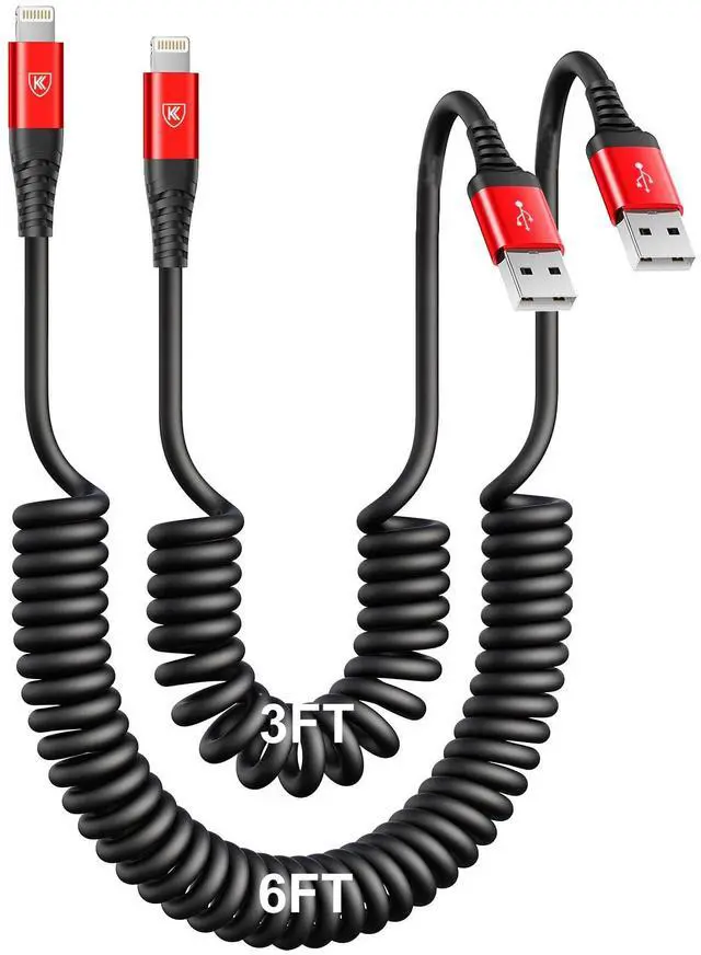 ![Alt view image 6 of 6 - KEHIPI Coiled Lightning Cable, iPhone Charger Cable 3FT/6FT for CarPlay, 2 Pack [Apple MFi Certified] Lightning Cord Compatible with iPhone14/13/12/11 Pro Max/XS MAX/XR/XS/X/8/7/Plus/6S iPad/iPod-Red](https://c1.neweggimages.com/productimage/nb640/BJZJD2509170D9A6919.jpg)