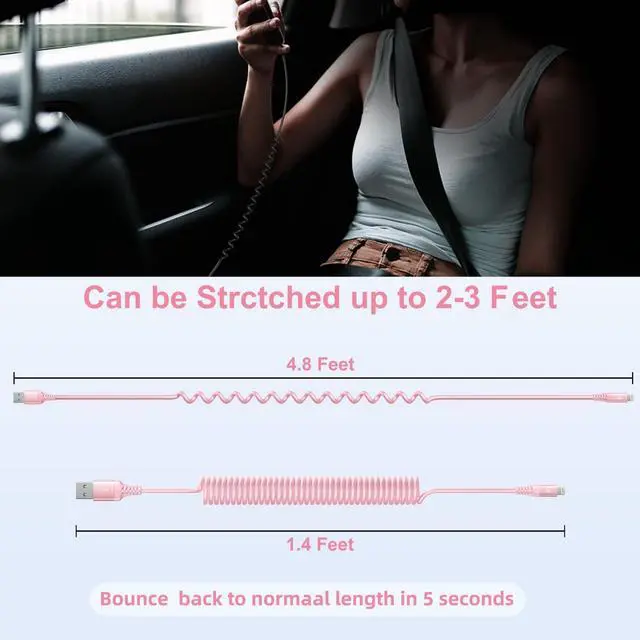 ![Alt view image 4 of 6 - KEHIPI iPhone Charger Cable for Car 3FT, 2Pack Coiled Coiled Lightning Cable [Apple MFi Certified] iPhone Cable Compatible with iPhone14/13/12/11 Pro Max/XS MAX/XR/XS/X/8/7/Plus-Pink](https://c1.neweggimages.com/productimage/nb640/BJZJD2509170DK3HWD4.jpg)