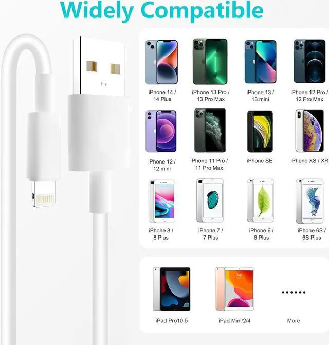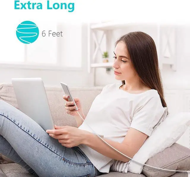 Good ValueFor the price of one you get the Package include 2 Pack 6 Feet Mfi Certified iPhone Cables. Perfect DesignPerfect Lengths - 6 feet Compact Lightning to USB connector head fits most iphone cases and accessories you don't have to take the case off when charging make you life more convenient. Instant Responses No Error Message pops up. Real High Speed Phone Charging Cable with stable and efficient current output you can plug it into laptop computers and in-car charging adapter. Charge & SyncEnsure a maximum charging speed up to 2.4 amp. Great performance ensures your devices syncs and charge simultaneously with up to 480 Mb/s transferring speed.