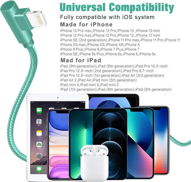 Perfect Compatibility: Precise interface design iPhone charger compatible with iPhone 13/iPhone 13 mini/iPhone 13 Pro/iPhone 13 Pro Max iPhone 12/iPhone 11 Pro/iPhone 11 Pro Max/XS / Max / XR / X / 8 Plus / 8 / 7 Plus / 7 / 6s Plus / 6s / 6 Plus / 6 / 5s / 5c / 5 / iPad Pro / iPad Air / Air 2 / iPad mini / mini 2 / mini 4 / iPad 4th gen / iPod Touch 5th gen / iPod.