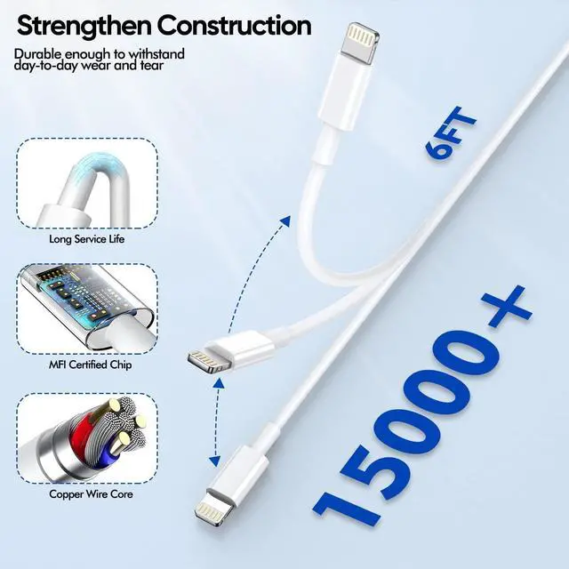 You can easily take it when you travel iphone charger 6 feet cord is ideal for charging at home or in the office or travel outside which is lightweight and small in size. [ MFI Certified Lightning iPhone Charging Cable]MFi Certified iPhone Lightning Charger Cord built in an original chip which means it can charge your iPhone iPad iPod perfectly iphone usb charger Compatible with your iPhone 14 and iPhones Charger. 2 Pack 12 000 bend lifetime iPhone lighting charger cable cord provides much longer using time will not break easily. [Safe & Fast iPhone Charger Block] chargers for iphone set approved by the U.
