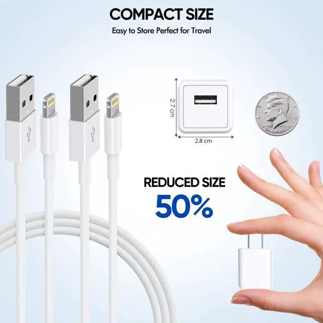 [Excellent Compatibility Charger]2Pack iPhone Charging support for all iOS versions including iPhone 14/iPhone 14 Plus/iPhone 14 Pro/iPhone 14 Pro Max iPhone 13/iPhone 13 Mini/iPhone13 Pro/iPhone13 Pro Max iPhone 12/iPhone 12 Pro/iPhone 12 Pro Max/iPhone 12 Mini iPhone 11/iPhone 11 Pro/iPhone 11 Pro Max iPhone XS Max/iPhone XS/iPhone XR/iPhone X iPhone 8/iPhone 8 Plus iPad Pro/ iPad Air/iPad Mini/ iPad AirPods and more Lighting Devices. No error messages pop up. [iPhone Chargers 2 Pack with iPhone Cord]iphone chargers 2 pack & 2 pack iphone charging cable for your convenience. Lightweight & compact design that fits your storage requirements.