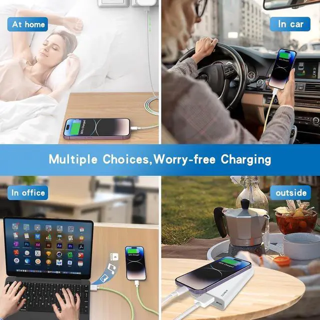 Convenient Charging: With three different colors and lengths of iPhone charger cord durable flexible and easy to distinguish. Making it convenient for a variety of needs You can keep charging your iPhone or iPad at home office car travel etc.
