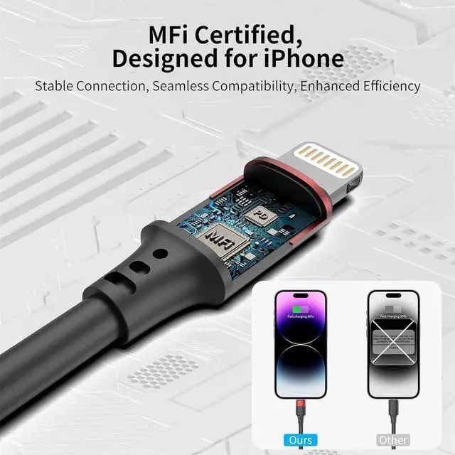 Quick Charge + Fast Data TransferOur 1ft iPhone cord for cars supports 2.4A fast charging and 480Mbps data transfer which is perfect for both productivity and entertainment. Ultra-Stable & Long-LastingThis 12-inch Lightning cable features a reinforced copper core and withstands 10 000+ bends delivering stable charging and 2x longer lifespan than standard cables. MFi-Certified ReliabilityThe iPhone charger short cord is guaranteed to work flawlessly with your iPhone 14/13/12/11 and AirPods - delivering stable warning-free charging every time. Ideal 1ft lengthThis space-saving USBA to Lightning cable is ideal for car charging bedside use and charging stations - long enough to reach short enough to stay organized.