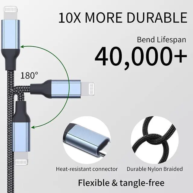 More DurableUSBC iPhone charger cable 2 ft is made of high-quality nylon braided material and aluminum alloy charging head tested with stand over 20000 bends the design makes it more durable wear-resistant and not easy to break or fade. What You Get2ft type c to iPhone charger cable 2 Pack our worry-free 24-Month warranty and lifetime customer service if you have any problem about our product please feel free to contact us we will solve it within 24 hours.