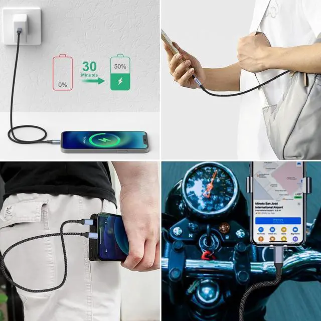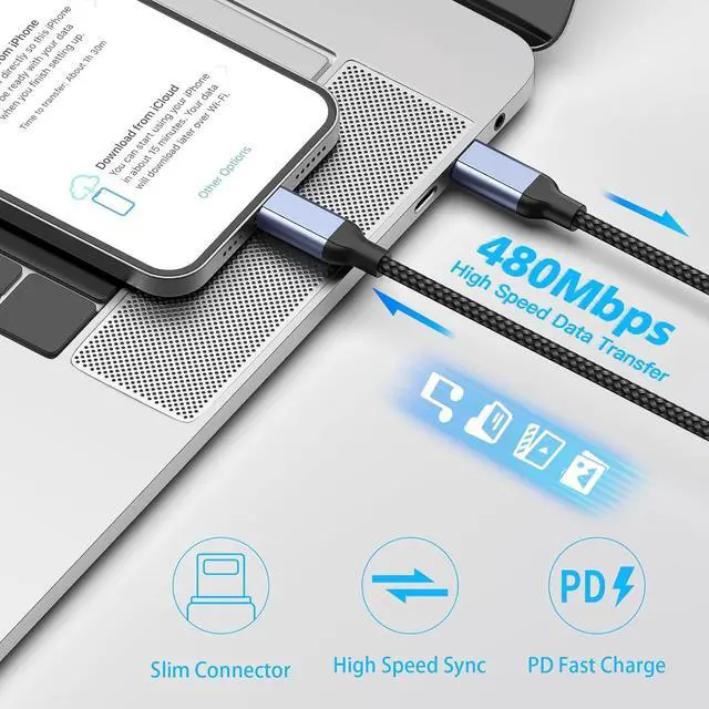 2 Foot Portable Length usbc to lightning cable for iphone 2ft is the perfect length for your cars or trucks without having too much extra wire to tangle or coil up lightning cable 2ft for car charging and play plug without all the extra length. iPhone cord 2ft will reduce the cable clutter on desk easy to carry with power bank while hiking. PD Fast Charging&Data SYNC USB-C to Lightning Cable 2ft can be used with 20W or above USB-C Power Adapter to achieve fast charge up to 3A iPhone cable 2ft supports the fast speed 480Mbps(60M/s) transmission of data.
