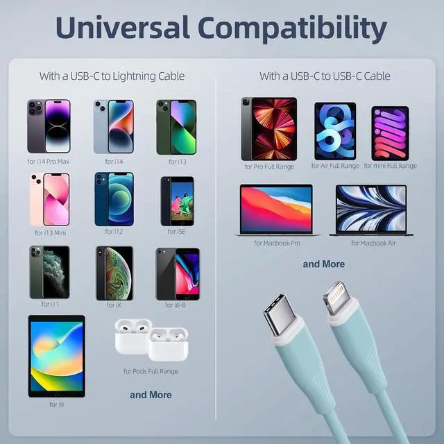 Compatibility]: USB C to Lightning cable (6ft). Supports PD fast charging for iPhone 7 8 X 11 12 13 14 Plus Pro Max. Ideal for home office or travel (Note: Requires USB-C wall charger for fast charging)[High