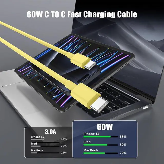 Compatible: This C to C fast charging cable can connect with all usb c port such as 65W /45W /35W /30W /25W /20W/18W. it compatible with iPhone 16 15/15 Pro/15 Pro Max/15 Plus MacBook Pro 13 inch Macbook Air 13 /m1 Inch MacBook 12 inch iPad Pro 12.9 /11 inch iPad Air 4/5 iPad Mini 6 Google Pixel 6/6 Pro/5/5a for