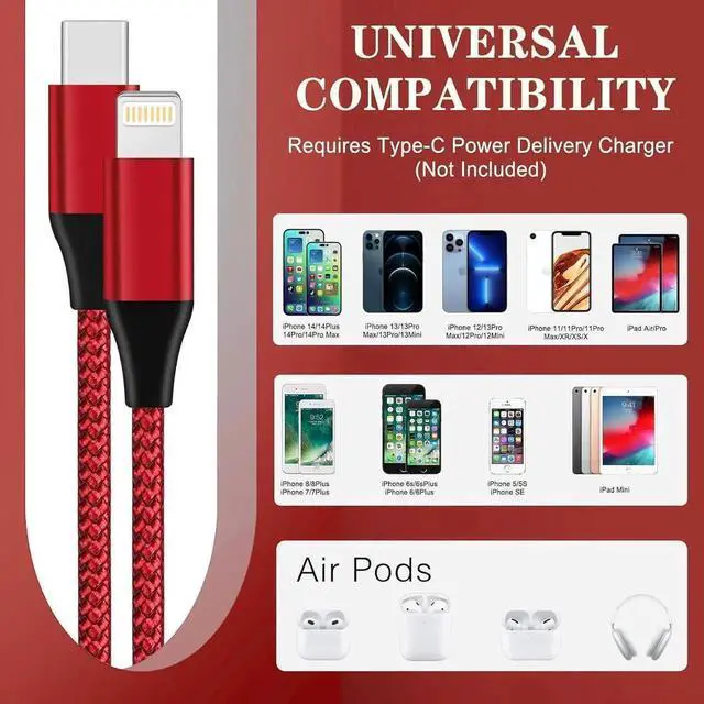 ![Alt view image 4 of 6 - iPhone Charger Fast Charging Cable USB C to Lightning Cable [Apple MFi Certified] 3Pack 10FT Fast iPhone Charger Cord Nylon Braided USBC to Lightning Cable for iPhone 14 Pro/13/12 MiNi/11/XR AirPods](https://c1.neweggimages.com/productimage/nb640/C0U0S250819052JU96B.jpg)