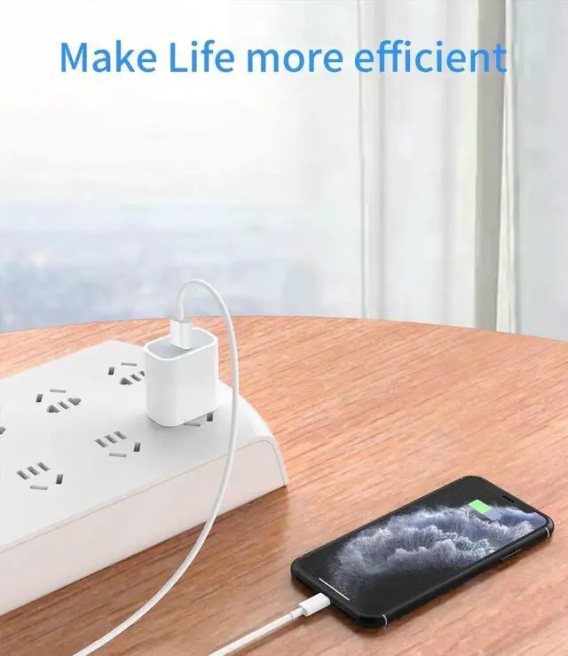 This power delivery also fit for iPhone 6s/7 Plus in original charging speed. Efficient Safe Fast Charging This PD Wall FAST Charger Certified by UL ETL FCC CE ROHS. The intelligent temperature control system Multifunctional Intelligent Protect Technology provides temperature control surge protection short-circuit pre. MFi Certified lightning cable match the current required by the device automatically charge your iPhone/iPad/ Pro device fast safely and steadily Maximize the life of your battery.