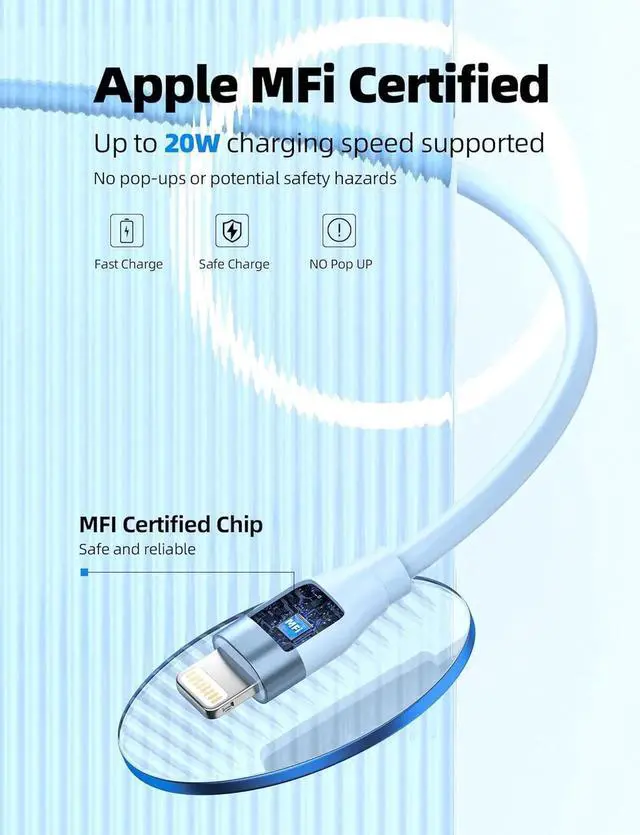 MFi Certified: usb c to lightning cable guaranteed no pop-up warning messages. These iphone fast charger cables use the newest C94 lightning end design for fast charging. Built-in overvoltage protection ensure your iPhone/iPad devices are charged safely and takes the worry out of itPD Fast Charging and