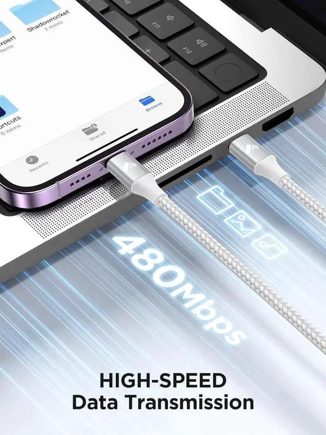 Fast USB C to Lightning CableUSB-C to lightning cable supports high-speed power delivery fast Charging can charge the iPhone 14 up to 50% in 30mins. Supports PD Fast Charge 3A and 480 Mbps high data transmission which can greatly saving your time.